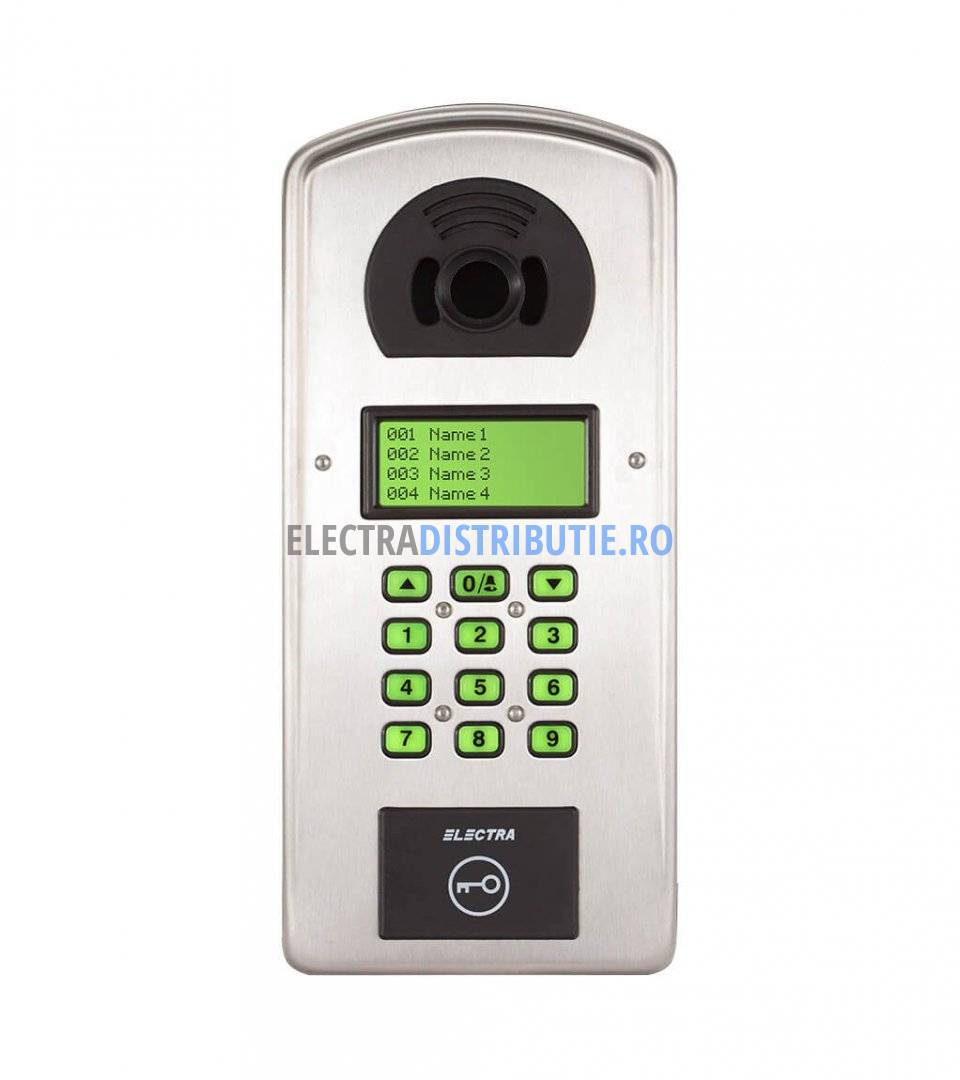 Carcasa INOX ~ Display electronic pentru lista locatari ~ Tastatura iluminata ~ Acces RFID ~ Comunicatie semi-duplex ~ Functii : apel, comunicatie, deschidere usa, comanda AUX, max. 4 in paralel